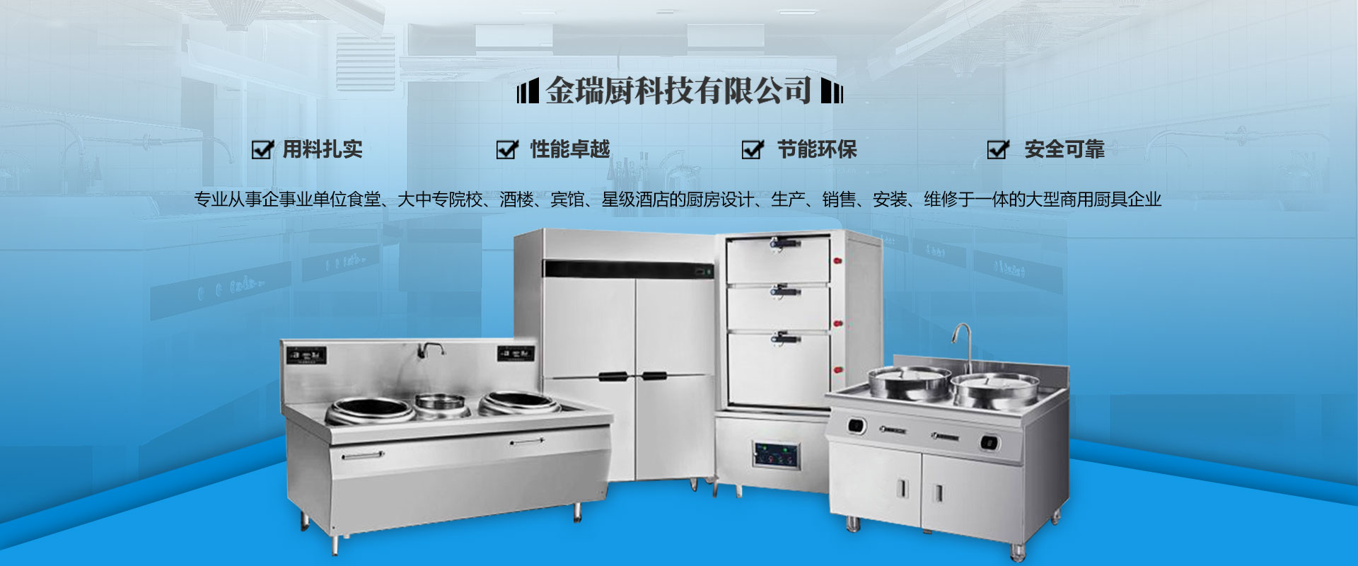 四川金瑞廚科技有限公司是一家專業(yè)從事企事業(yè)單位食堂、大中專院校、酒樓、賓館、星級酒店的廚房設(shè)計、生產(chǎn)、銷售、安裝、維修于一體的大型商用廚具企業(yè),。公司擁有一批經(jīng)過專業(yè)培訓的高素質(zhì)管理人員及工程技術(shù)人員,團隊分工實施工程策劃、產(chǎn)品研發(fā)、設(shè)計、制造、檢驗、安裝、售后服務(wù)等方面的工作,擁有從設(shè)計、安裝、調(diào)試到提供完善迅速的售后服務(wù)一體化的專業(yè)水準。公司主要銷售廚房設(shè)備、不銹鋼制品、酒店設(shè)備、食品加工設(shè)備、制冷設(shè)備、通風設(shè)備、消音設(shè)備、防水處理設(shè)備等。